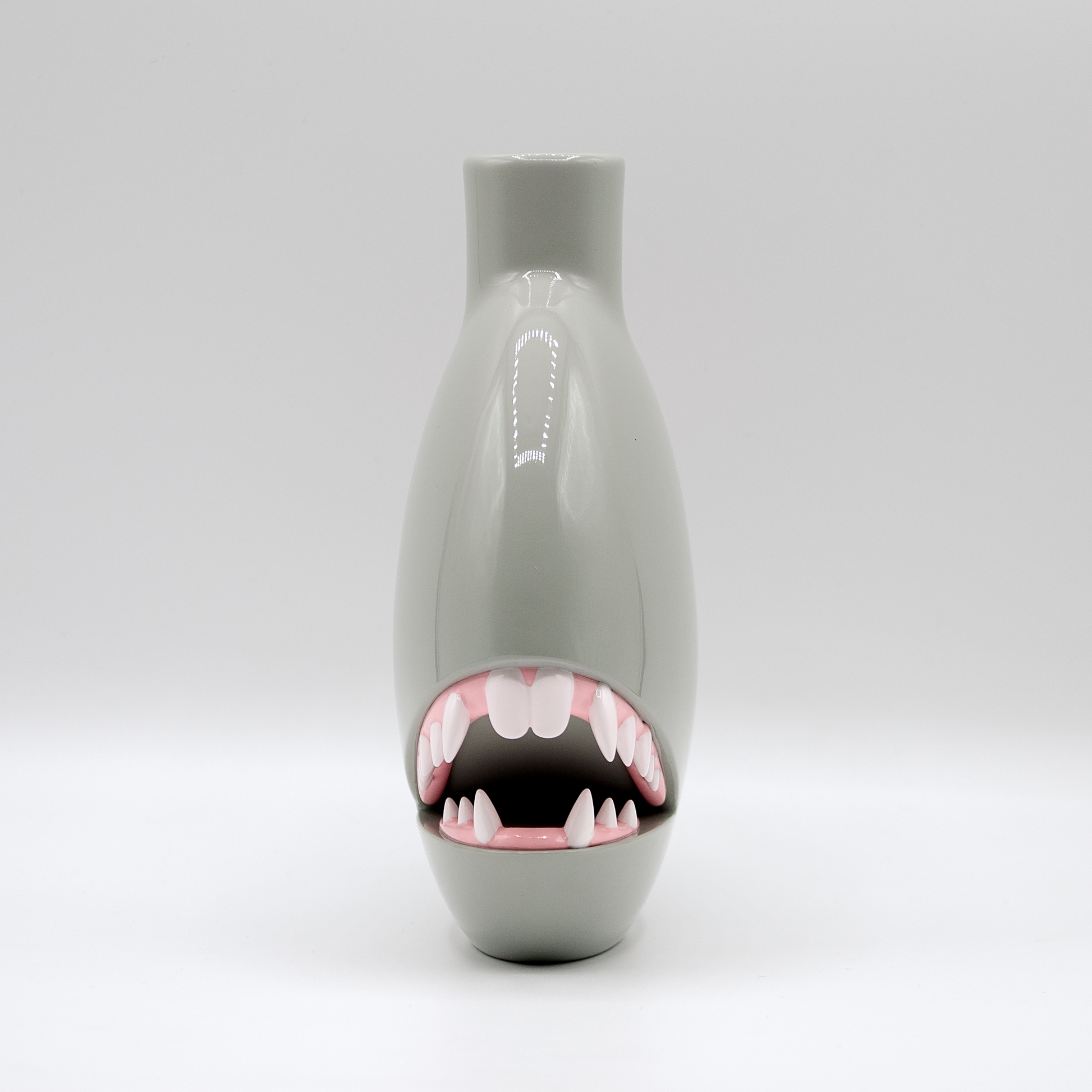 During the dark days of the great 21st-century pandemic, Josh Divine changed things in the art/sculpture domain with a sharp new art toy + lifestyle hybrid. Living up to its name, Biting Vase features an elliptical resin base with two offset mouths filled with sharp teeth. With character and concept, the vase blends striking visuals with everyday functionality.